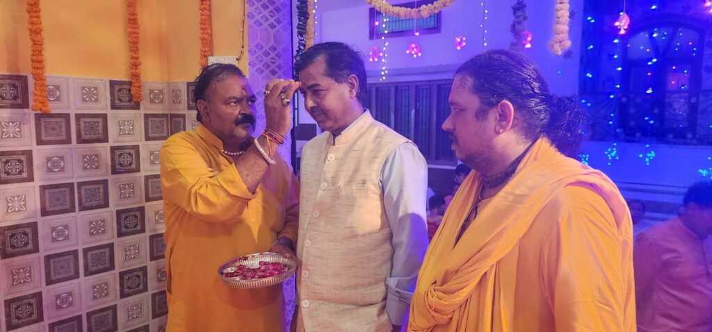 हरिद्वार, संवाददाता। श्री अखंड परशुराम अखाड़े के अध्यक्ष पंडित अधीर कौशिक के आर्य नगर स्थित आवास पर गोवर्धन पूजा का आयोजन पूर्ण विधि-विधान और हर्षोल्लास के साथ किया गया। इस पावन अवसर पर नगर विधायक मदन कौशिक, रानीपुर विधायक आदेश चौहान समेत कई लोग शामिल हुए। पंडित अधीर कौशिक, महंत राम रतन गिरी, पंडित पवन कृष्ण शास्त्री ने विधायक मदन कौशिक को पटका और फरसा भेंट कर सम्मानित किया।