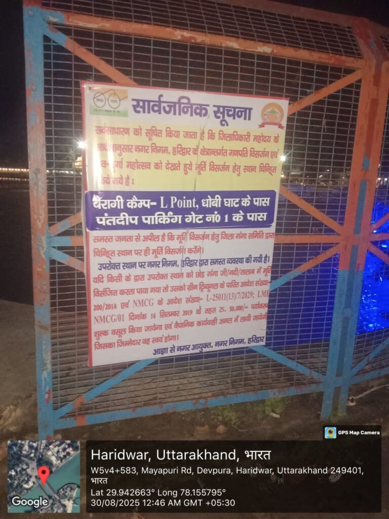 गौरतलब है कि हरिद्वार में गणेशोत्सव बड़े धूमधाम से मनाया जाता है। श्रद्धालुओं की भीड़ को देखते हुए नगर निगम ने बैरागी कैंप और पंतद्वीप क्षेत्र में सुरक्षा और सुविधा के पुख्ता इंतजाम किए हैं। निगम का कहना है कि शहरवासियों के सहयोग से गंगा संरक्षण और धार्मिक आस्था दोनों का संतुलन बनाए रखना ही उद्देश्य है।