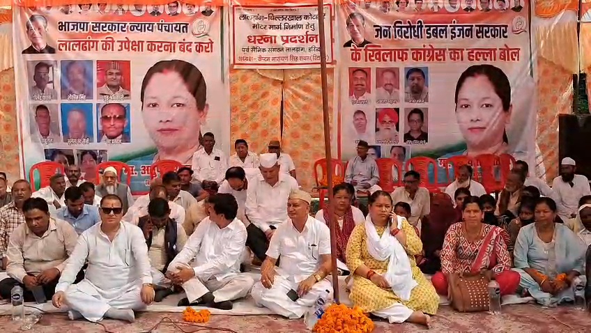 लालढांग, संवाददाता। पूर्व मुख्यमंत्री हरीश रावत के नेतृत्व में मंगलवार को लालढांग के गांधी चौक पर सैकड़ों कांग्रेसियों ने लालढांग चिल्लरखाल कंडी मार्ग के निर्माण को लेकर धरना प्रदर्शन किया। इस दौरान विधायक अनुपमा रावत, पूर्व मंत्री सुरेंद्र सिंह नेगी और पूर्व प्रदेश अध्यक्ष गणेश गोदियाल भी शामिल रहे। हरीश रावत ने कहा कि कांग्रेस सरकार के समय इस मार्ग के निर्माण को स्वीकृति दी गई थी और इसे बनाने की तैयारी की गई थी।