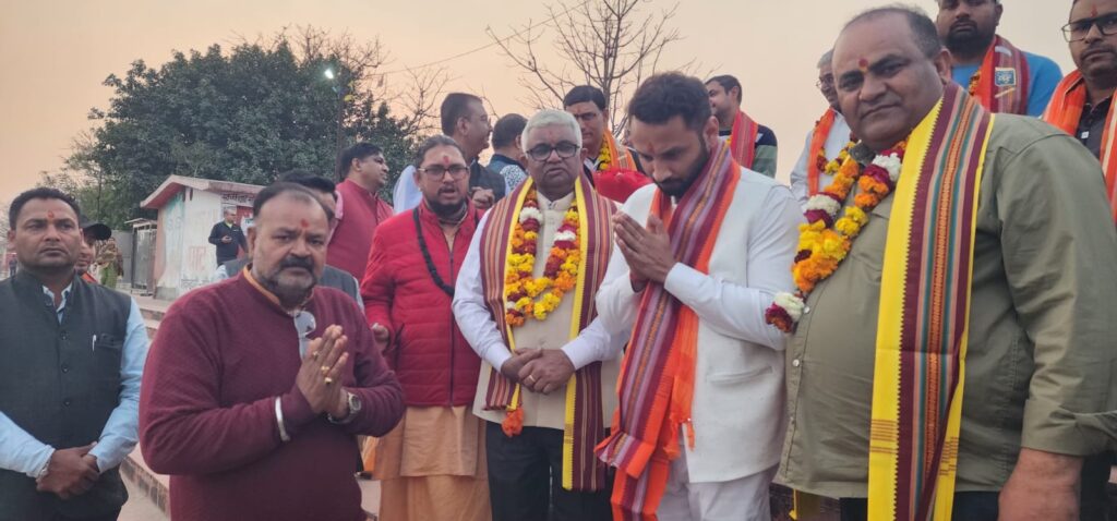 हरिद्वार, 26 फरवरी। श्री अखंड परशुराम अखाड़े की और से ब्राह्मण जागृति संस्थान भेल के नवनियुक्त पदाधिकारियों का स्वागत किया गया। परशुराम घाट पर स्वागत कार्यक्रम के दौरान श्री अखंड परशुराम अखाड़े के अध्यक्ष पंडित अधीर कौशिक ने करण पंडित को अखाड़े का जिलाध्यक्ष बनाए जाने की घोषणा भी की। ब्राह्मण जागृति संस्थान भेल के पदाधिकारियों को शुभकामनाएं देते हुए पंडित अधीर कौशिक ने कहा कि सभी पदाधिकारी एकजुट होकर समाज के हितों के लिए कार्य करेंगे।