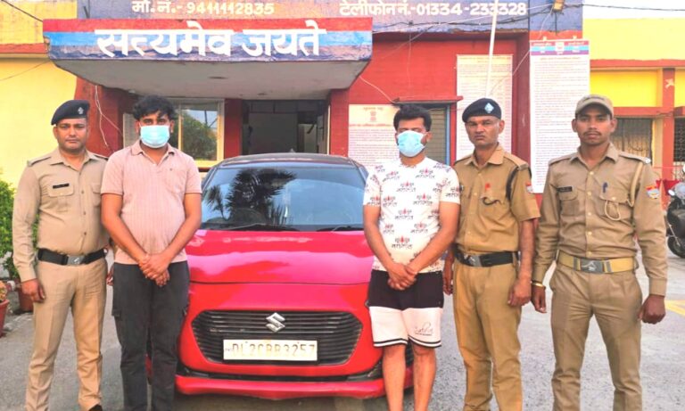 जानकारी के अनुसार लाहड़पुर चेकपोस्ट पर चेकिंग के दौरान पुलिस ने एक संदिग्ध स्विफ्ट कार (DL2CBB3257) को रोककर जांच की। जांच में पाया गया कि कार के शीशों पर काली फिल्म चढ़ी हुई थी और वाहन में अवैध हूटर भी लगा था। कार में तीन युवक सवार थे, जो यातायात नियमों का उल्लंघन करते हुए वाहन चला रहे थे। पुलिस ने मौके पर ही काली फिल्म और हूटर हटवाकर वाहन को जब्त कर लिया और संबंधित धाराओं में कार्रवाई शुरू कर दी।
