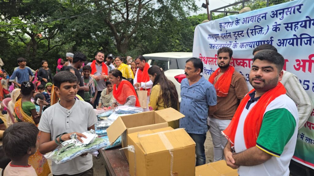 हरिद्वार, संवाददाता। फरीदाबाद के ग्राम भूपानि स्थित सतयुग दर्शन ट्रस्ट के ओर से विश्वस्तरीय निष्काम सेवा अभियान की शुरुआत की गई। संगठन से जुड़े लोगों नेरविवार को हरिद्वार की चंडीघाट बस्ती में सैकड़ों लोगों को भोजन, कपड़े और आर्थिक सहायता राशि वितरित की। समिति के सभी सदस्यों सहित समाज के सम्पन्न व्यक्तियों से, अपनी एक महीने की आय को जुलाई माह में बेसहारा लोगों को भोजन-कपड़ा और कुछ आर्थिक सहायता प्रदान करने की अपील की थी। अपील के मध्यनजर मानवता के कल्याण हेतु हरिद्वार सहित देश-विदेश के कई भागों में समिति से जुड़े लोगों द्वारा जरूरतमंद लोगों को गली, मोहल्ले व विभिन्न गाँवो से खोज-खोज कर भोजन, कपड़े व कुछ धनराशि प्रदान की गई।
