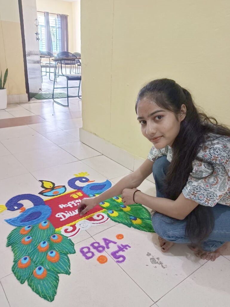 मेहंदी प्रतियोगिता में बीसीए प्रथम वर्ष की पायल शर्मा प्रथम रहीं, दीया मेकिंग में बीबीए तृतीय वर्ष की जीवांशी चौहान ने बाजी मारी। वॉल पेंटिंग में बीसीए द्वितीय वर्ष की तरणप्रीत, ईशु, दिव्या और श्रेया की टीम ने श्रेष्ठ प्रदर्शन किया, जबकि बे डेकोरेशन में अनिकेत, वासुदेव, चिनांश और राज (बीसीए प्रथम वर्ष) की टीम विजेता रही।