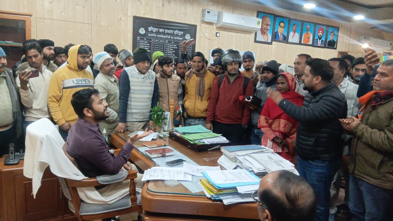 दरअसल खानपुर रेंज में कुछ महिलाएं जंगल में लकड़ियां बिनने गई थी, जिन्हें वन विभाग की टीम ने पकड़ लिया था। ग्रामीणों के हंगामे के बाद एक दिन पहले महिलाओं को छोड़ दिया था। लेकिन आज शुक्रवार को खानपुर रेंज से कई ग्रामीण हरिद्वार स्थित डीएफओ कार्यालय पहुंच गए। डीएफओ के दफ्तर में घुसकर ग्रामीणों ने अपनी शिकायत दर्ज कराई। इतना ही नहीं ग्रामीणों ने रेंजर के खिलाफ तत्काल कार्रवाई की मांग को लेकर हंगामा खड़ा कर दिया। कार्यालय में ही ग्रामीण हंगामे पर उतर आए और वन विभाग के खिलाफ नारेबाजी करने लगे। इस दौरान ग्रामीण सिकरौदा गांव से आए ग्रामीण बुरहान ने आरोप लगाया कि खानपुर रेंज के रेंजर बेवजह ग्रामीणों को परेशान करते हैं। जंगल में लकड़ियां बिनने गई महिलाओं को पकड़कर बंद कर दिया गया और उनके साथ अभद्रता भी की है। उन्होंने रेंजर पर आरोप रिश्वतखोरी का आरोप भी लगाया और तत्काल प्रभाव से रेंजर को हटाने की मांग की।